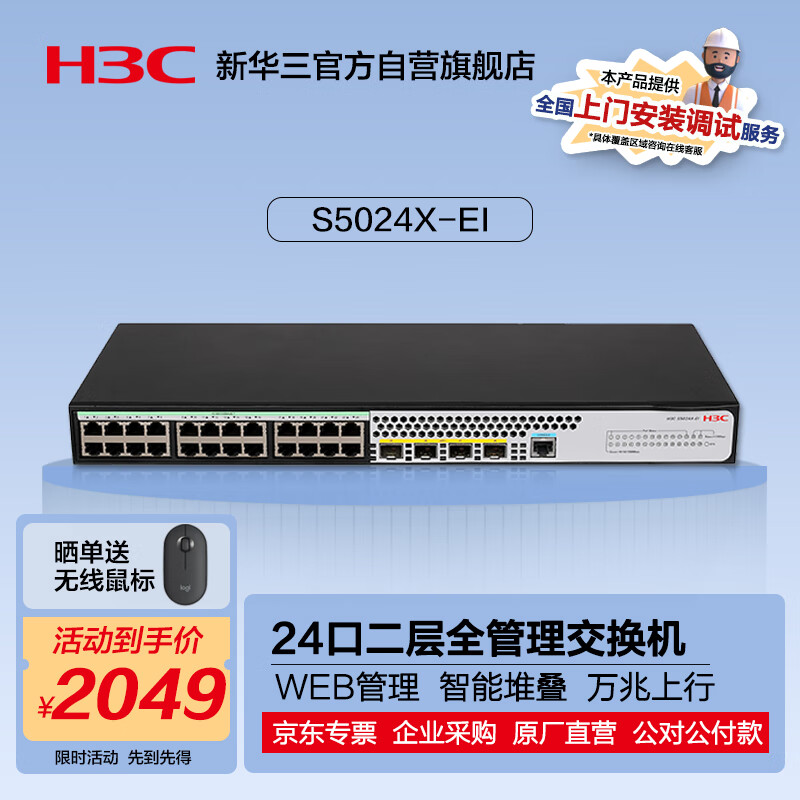 华三(H3C)S5024X-EI 24口千兆电+4万兆光纤口上行二层网管企业级网络交换机价格:2049.00元!