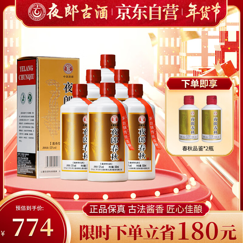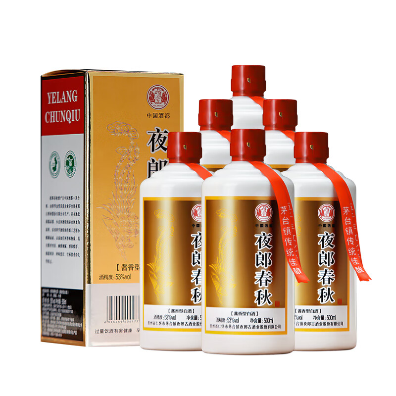 夜郎古夜郎春秋 年货送礼 酱香型白酒 53度 500ml*6瓶整箱装(内含礼袋)价格:954.00元!
