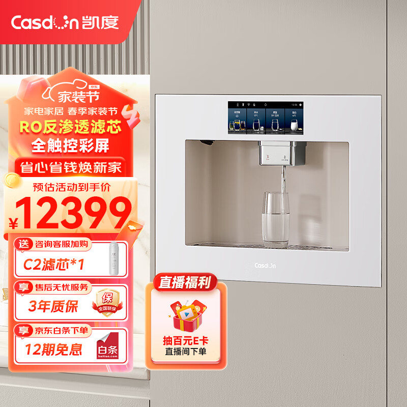 凯度(CASDON)嵌入式净饮机 饮水机 净水机 净水器家用 嵌入式直饮机 R0反渗透净水器 Z9S 白色价格:12399.00元!