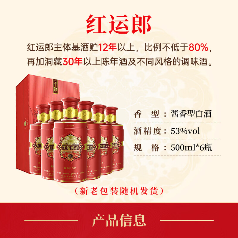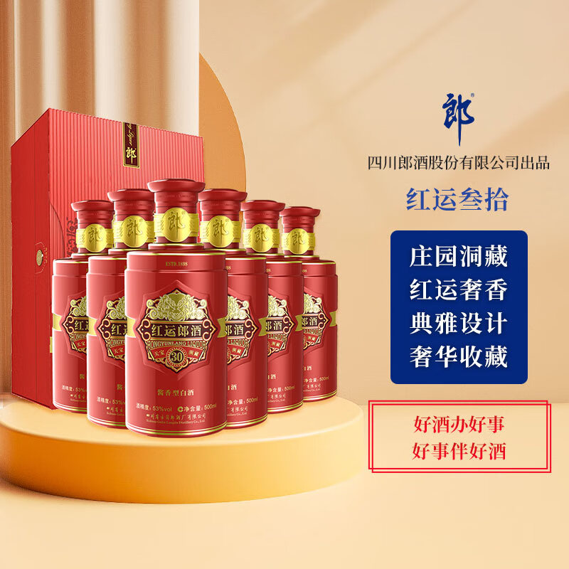郎酒 红运郎 53度 500ml*6瓶 整箱装 【奢香酱酒】价格:21594.00元!