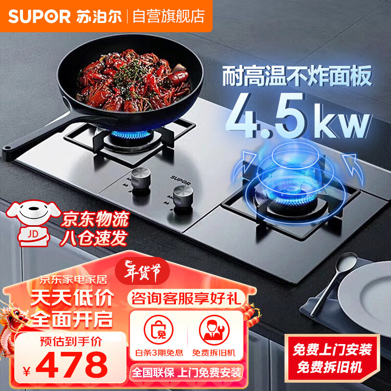 苏泊尔(SUPOR)燃气灶家用天然气灶不锈钢液化气灶双灶台式嵌入式两用灶具NS21 【罐装液化气】4.5KW聚能猛火价格:728.00元!