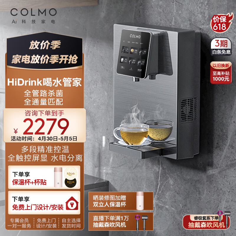 COLMO家用净水器伴侣管线机 全通量匹配 高温杀菌智能感应取水 加热直饮 壁挂式饮水机 CWG-RA08价格:2399.00元!