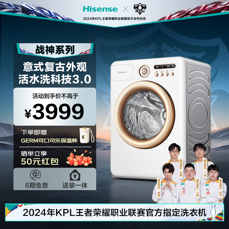海信(Hisense)战神系列 罗马假日全自动滚筒洗衣机 意式复古 10公斤家用大容量超薄 活水洗科技3.0 除菌 WG100R4价格:3999.00元!