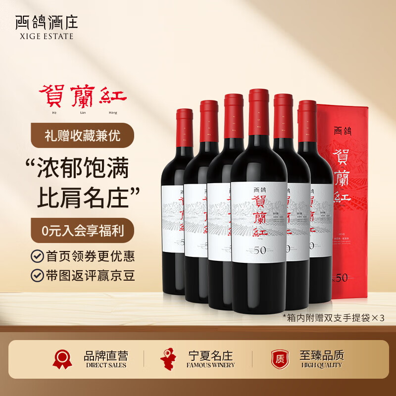 贺兰红西鸽N50国产干红葡萄酒750ml*6瓶整箱装 宁夏贺兰山精品红酒送礼价格:2228.00元!