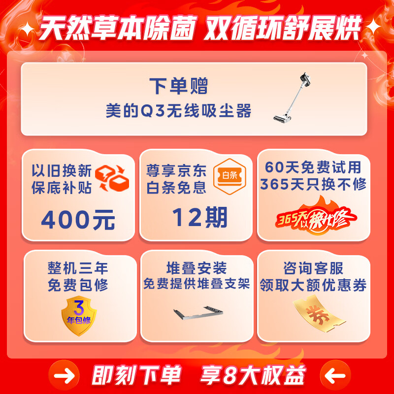 美的(Midea)洗烘套装 10KG滚筒洗衣机全自动+热泵烘干机 超薄大筒径 草本元气棒【元气轻氧】MG100LAIR+IAIR3价格:7999.00元!