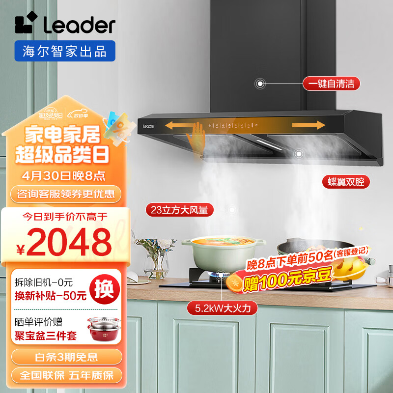 Leader海尔智家出品 抽油烟机 欧式双腔烟灶套装 23m3/min大吸力 排油烟机燃气灶具家用IKS9Z+GL2C天价格:2048.00元!