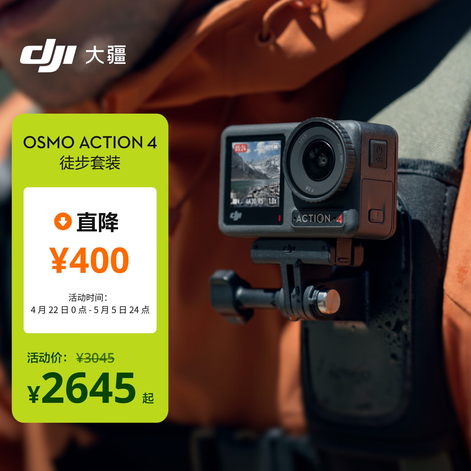 大疆 DJI Osmo Action 4 徒步套装 灵眸运动相机 摩托车山地公路骑行潜水防抖户外vlog相机 手持摄像机价格:2645.00元!