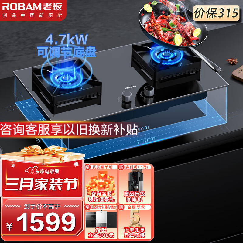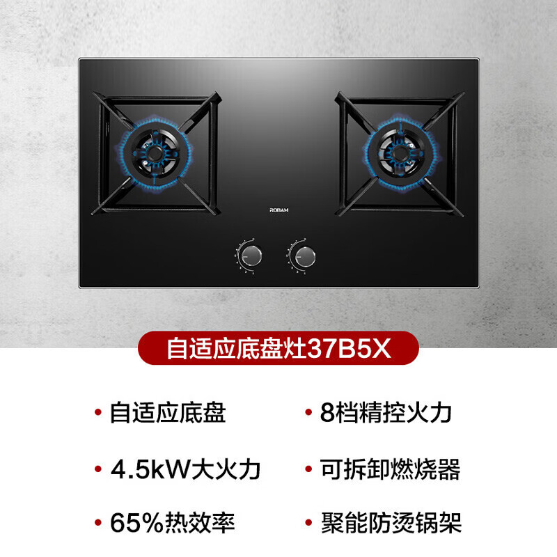 老板(Robam)燃气灶 4.7kW嵌入式钢化玻璃灶具 家用可调节灶具可调节底盘燃气灶37B5X (37B6A同型号)天然气价格:1599.00元!