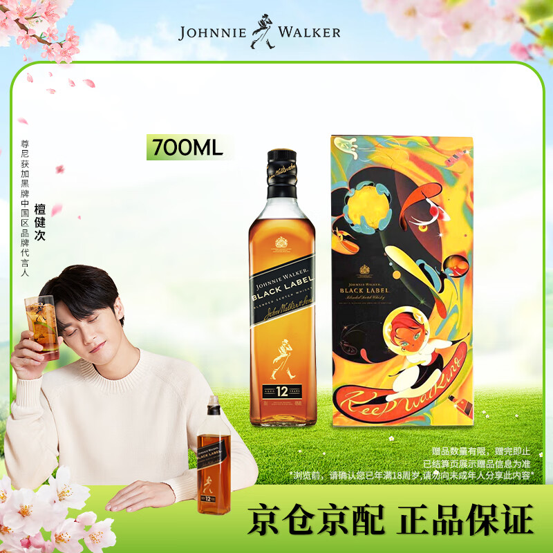 尊尼获加(JOHNNIE WALKER)洋酒 黑牌黑方 12年苏格兰调和型威士忌艺术家合作款700ml礼盒价格:209.00元!