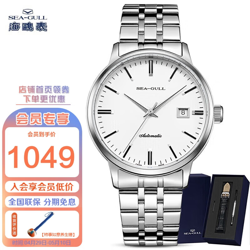 海鸥(SEAGULL)手表男士自动机械表 男表礼物 国民系列日历男士腕表套装816.362价格:1369.00元!