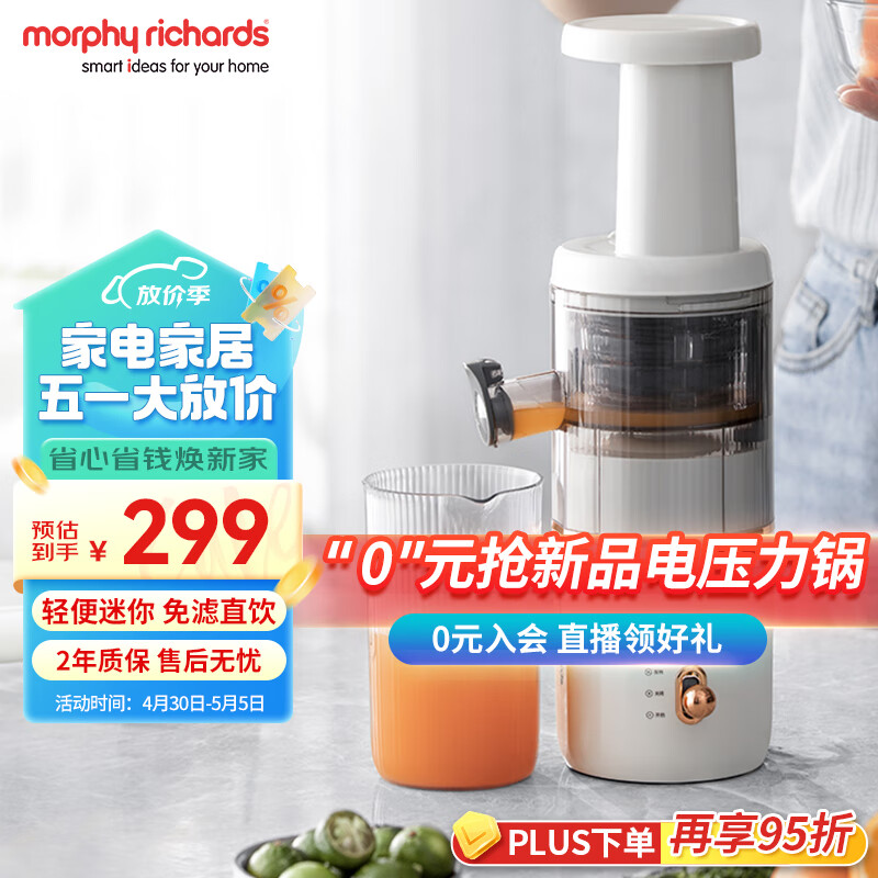 摩飞电器(Morphyrichards)榨汁机 家用原汁机 渣汁分离 多功能全自动果蔬榨果汁机 MR9901 白色价格:299.00元!