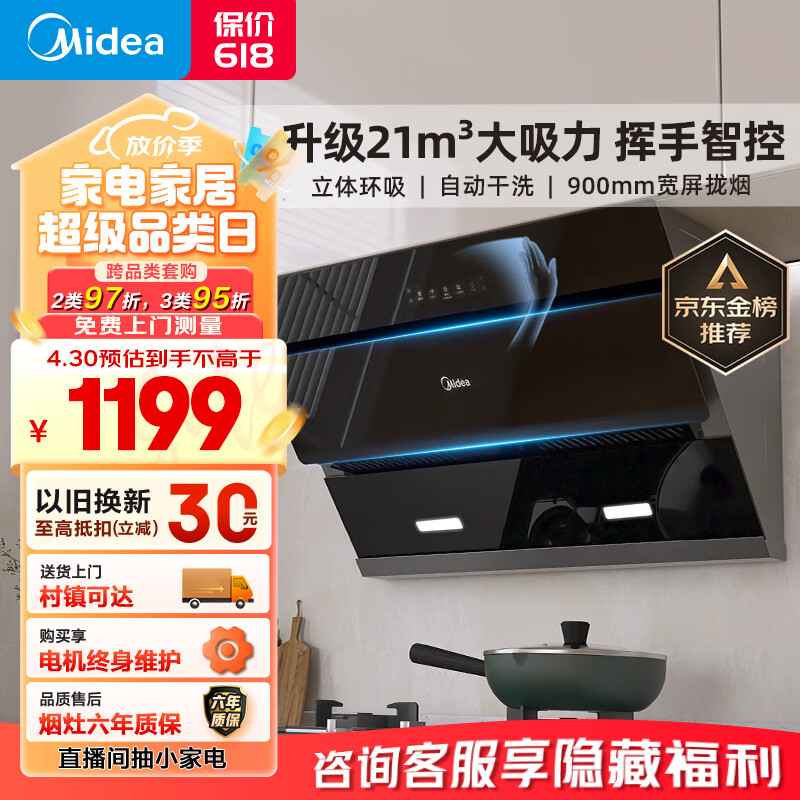 美的(Midea)抽油烟机侧吸式家用厨房油烟机大吸力 脱排油烟机排油烟机 吸油烟机CXW-270-J25S价格:1199.00元!