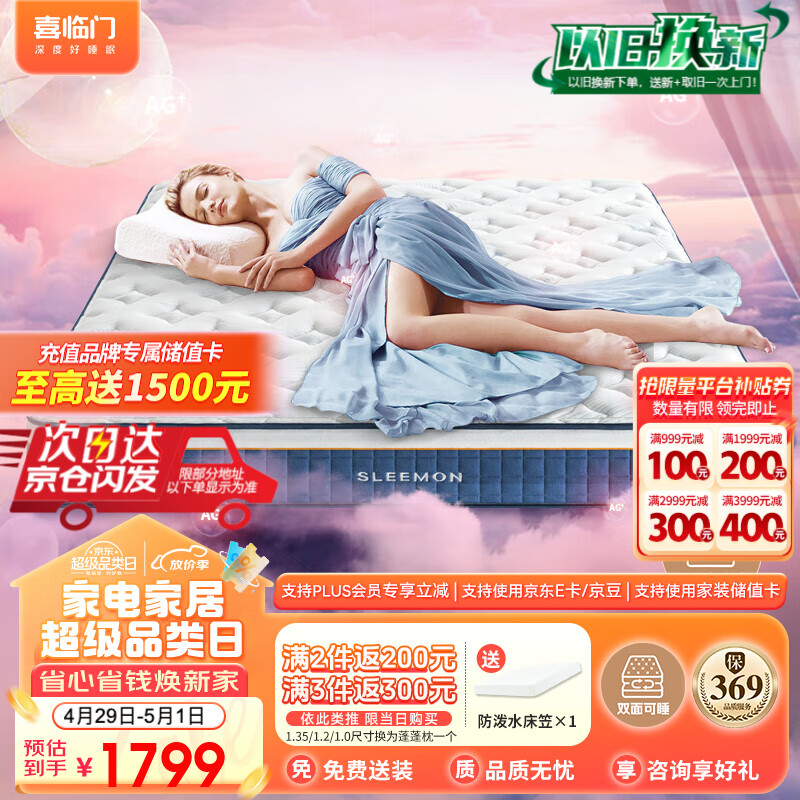 喜临门三重防螨 高纯乳胶独袋弹簧床垫 3D椰棕床垫 蝶梦Dream 1.5米*2米价格:2049.00元!