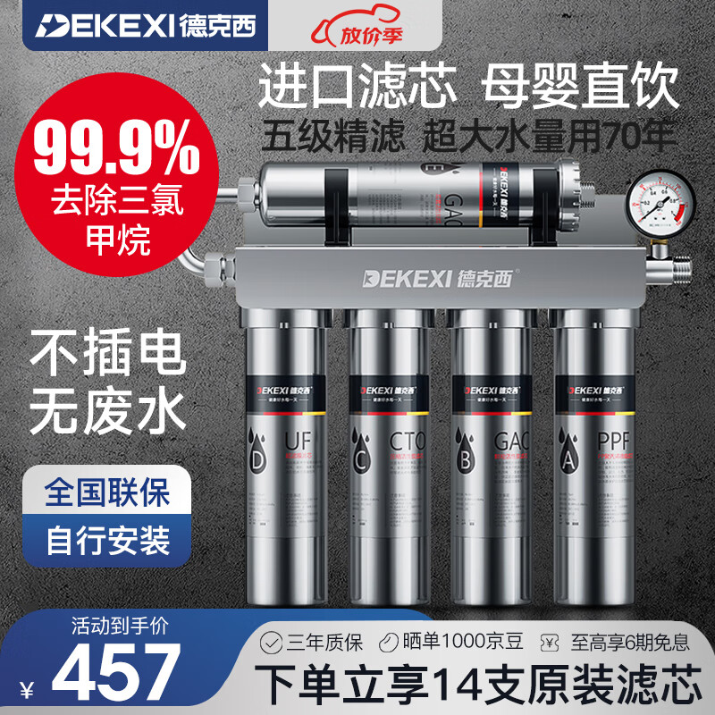 德克西(DEKEXI) 净水器家用直饮厨房自来水前置过滤器超滤净水机不锈钢净化器水龙头价格:657.00元!