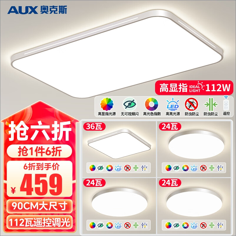 奥克斯(AUX) 照明吸顶灯led灯具客厅灯饰书房餐厅灯现代简约护眼全光谱智能价格:765.00元!