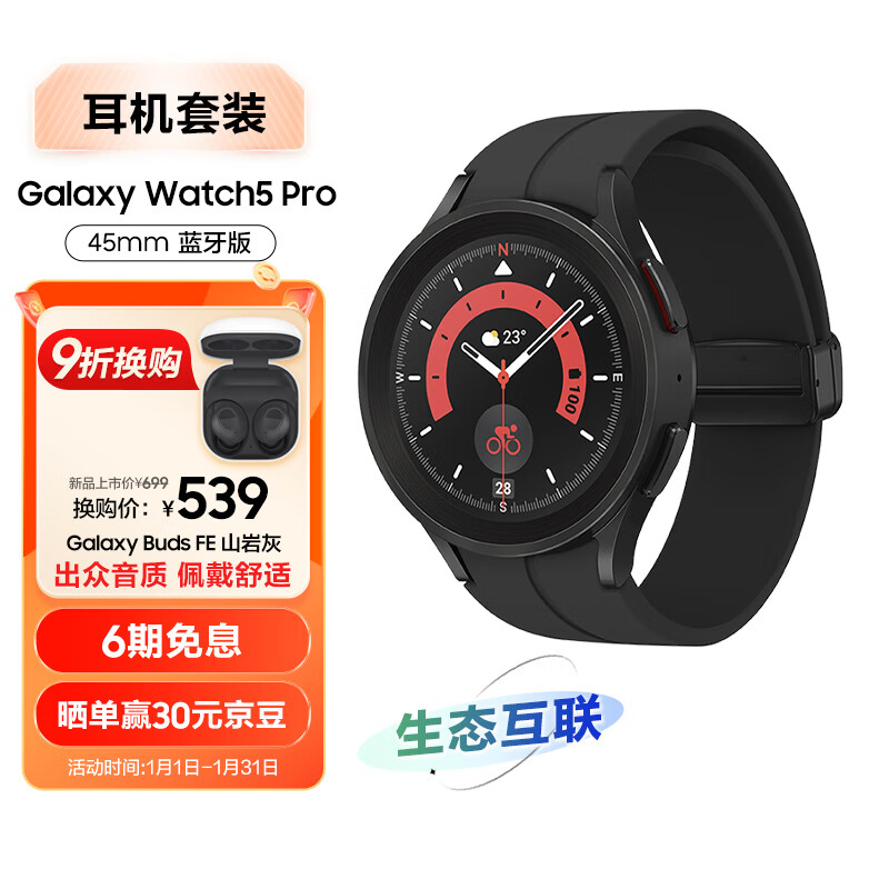 三星Galaxy Watch5 Pro ECG心电分析/持久续航/血压/健康监测/蓝牙通话/智能手表/运动手表 45mm 铂萃黑价格:2538.00元!