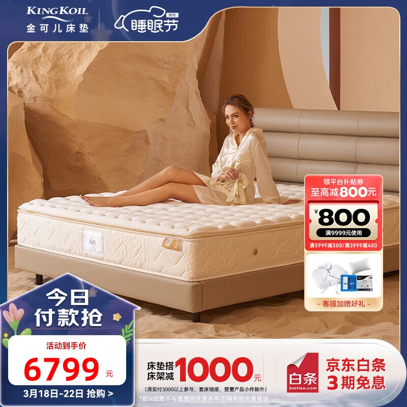 金可儿(Kingkoil)轻奢系列分区独袋弹簧床垫席梦思偏硬睡感尚坡升级款床垫1.5x2米价格:6799.00元!