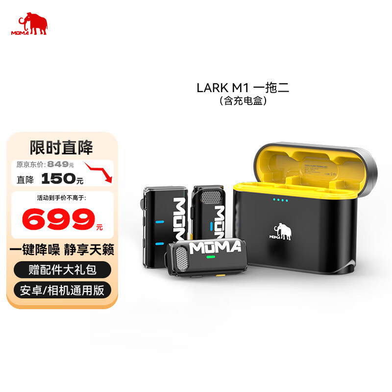猛玛(MOMA)无线麦克风领夹麦克风猛犸larkm1一拖二小蜜蜂vlog采访户外直播录音手机单反收音麦 LARK M1价格:699.00元!