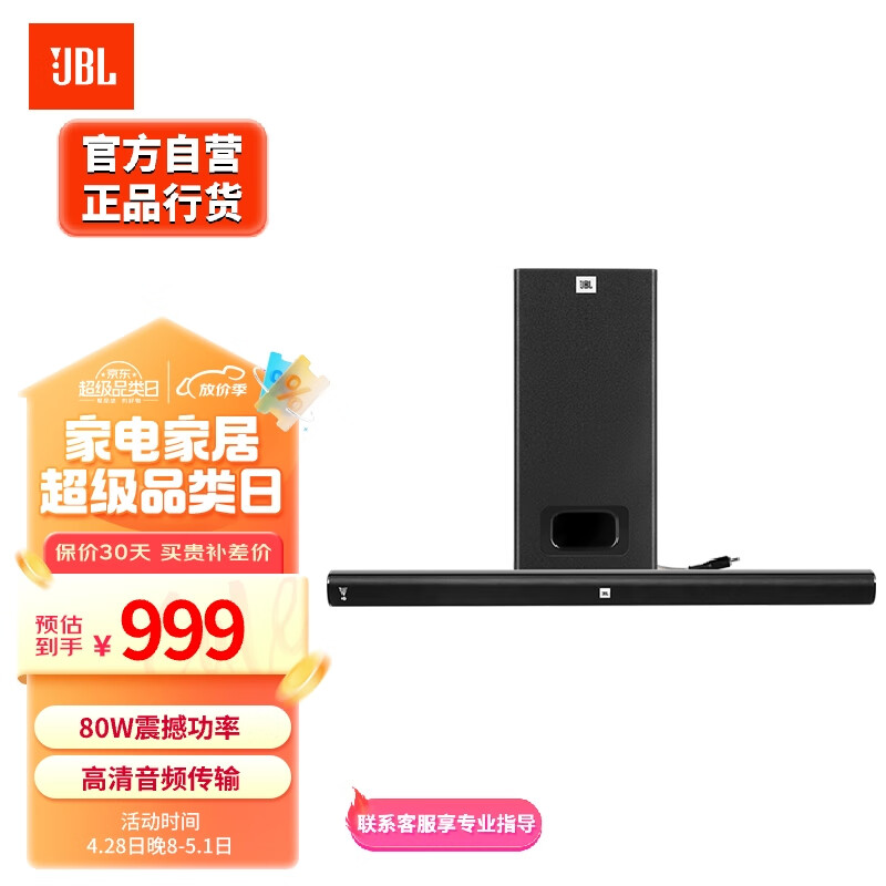 JBL CINEMA STVJ200回音壁电视音响 2.1声道家庭影院soundbar 家用无线蓝牙电脑音箱价格:999.00元!