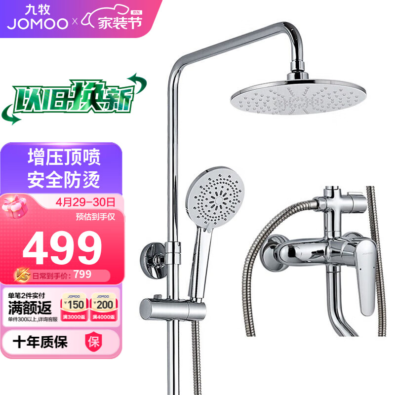 九牧JOMOO淋浴花洒套装增压防烫空气能除垢顶喷36416-126/1B2-1价格:599.00元!