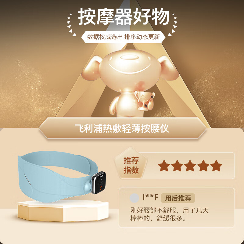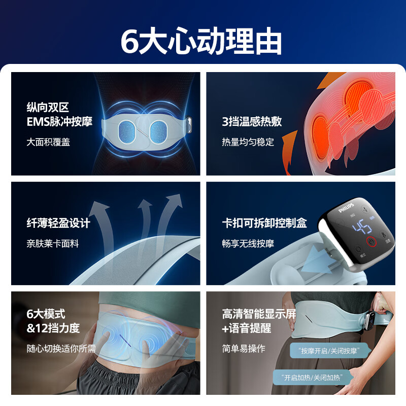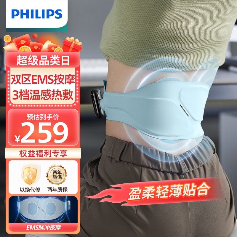 飞利浦(PHILIPS)腰部按摩器 无线轻薄贴肤热敷暖腹护腰仪 大姨妈痛经腰酸疼腰带实用送女友生日母亲节礼物3302B价格:309.00元!