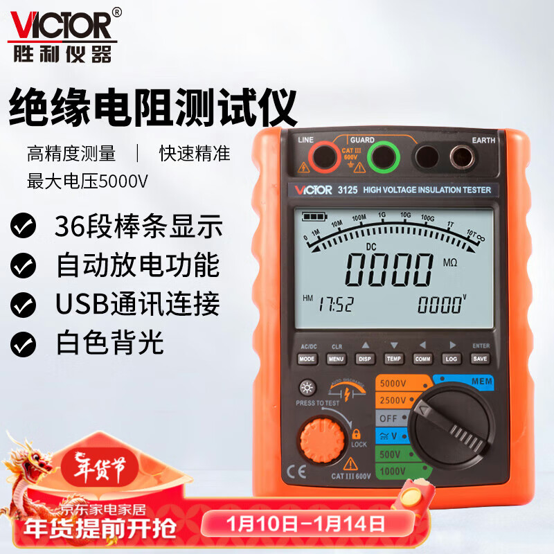 胜利仪器(VICTOR)数字绝缘电阻测试仪 兆欧表 高压兆欧表5000V VC3125价格:4356.00元!