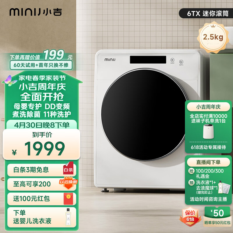 小吉(MINIJ)智控滚筒洗衣机 迷你母婴洗衣机 95度高温煮洗 强劲动力减震 MINIJ 6TX价格:2219.00元!
