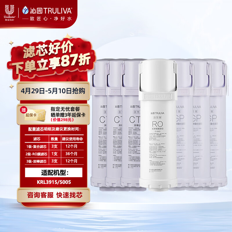 沁园(TRULIVA)小白鲸小水钻KRL3915/5005三年无忧7支滤芯套餐【RO膜*1+附件6支(复合*3+炭棒*3)】价格:1984.00元!