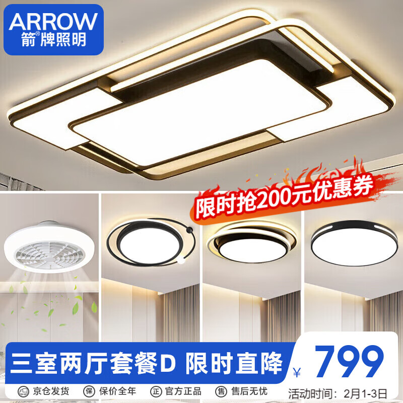 ARROW箭牌照明 大客厅灯LED北欧卧室铁艺吸顶灯具套餐中山灯具JPX096价格:799.00元!