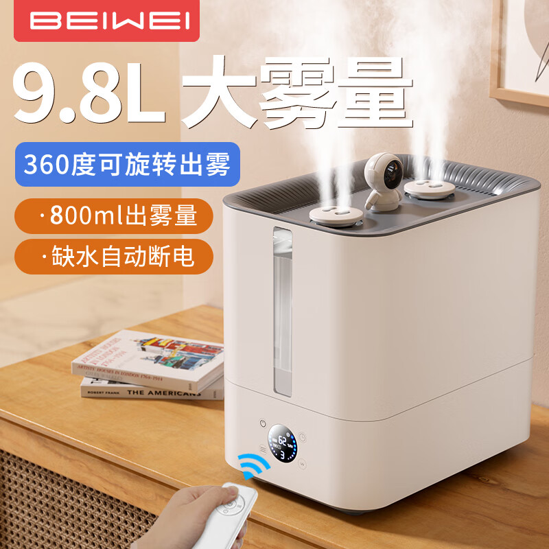 倍为9.8L空气加湿器 卧室婴儿用办公桌面大容量 家用低噪可定时智能恒湿母婴银离子上加水净化增湿机价格:269.00元!