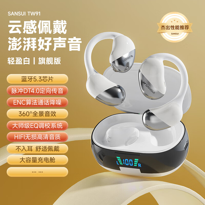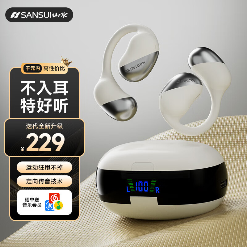 山水(SANSUI)TW91蓝牙耳机不入耳开放式运动降噪耳机骨传导概念无线挂耳式跑步超长续航适用华为苹果白价格:309.00元!