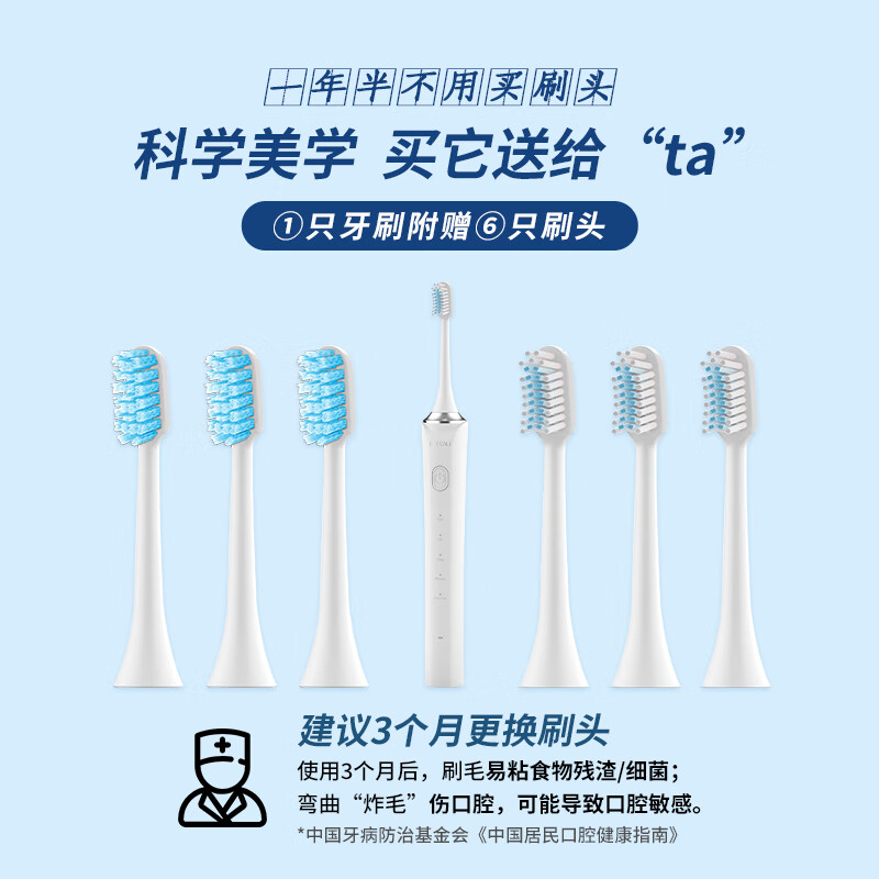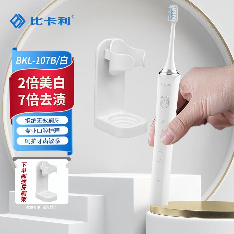 比卡利 电动牙刷声波电动牙刷 软毛牙龈呵护 美国杜邦刷头 107B优雅白价格:119.00元!