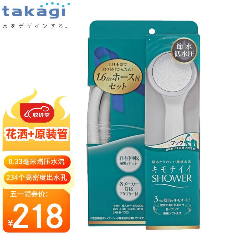 takagi增压淋浴花洒喷头 沐浴美肤莲蓬头 PP棉进化过滤杂质【日本进口】 JSA122(增压花洒+原装软管套装)价格:238.00元!