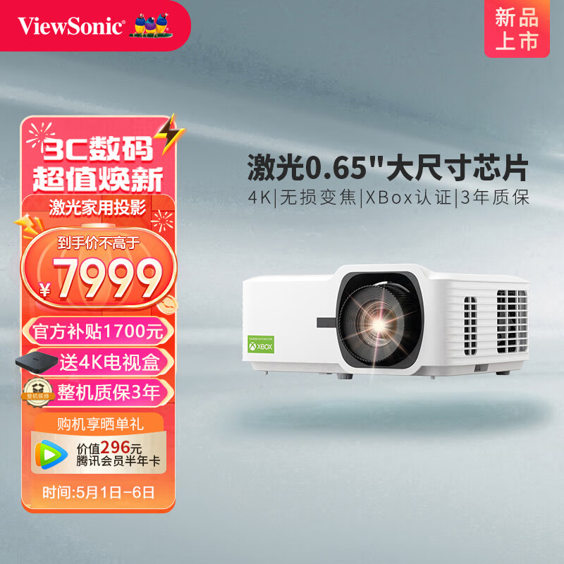 优派LX700-4K投影仪家用 激光投影机 家庭影院 游戏电竞(微软Xbox认证 0.65''大芯片 无损变焦)价格:9699.00元!