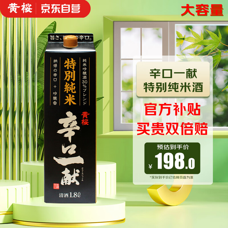 黄樱 特别纯米 辛口一献 日本清酒 原装进口 洋酒 1.8L价格:208.00元!