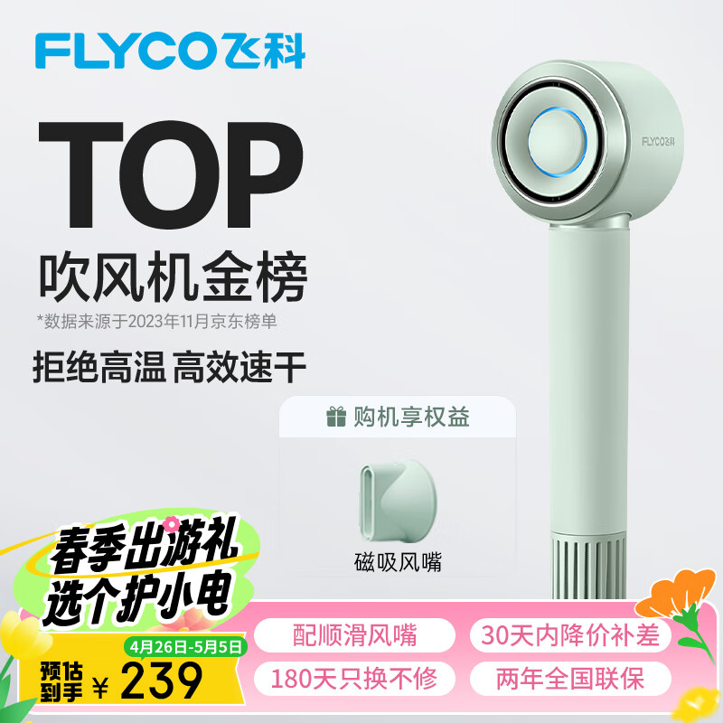 飞科(FLYCO)高速电吹风机送女友节日礼物大功率速干恒温负离子护发家用宿舍便携银河星环吹风筒FH6371水晶绿价格:339.00元!