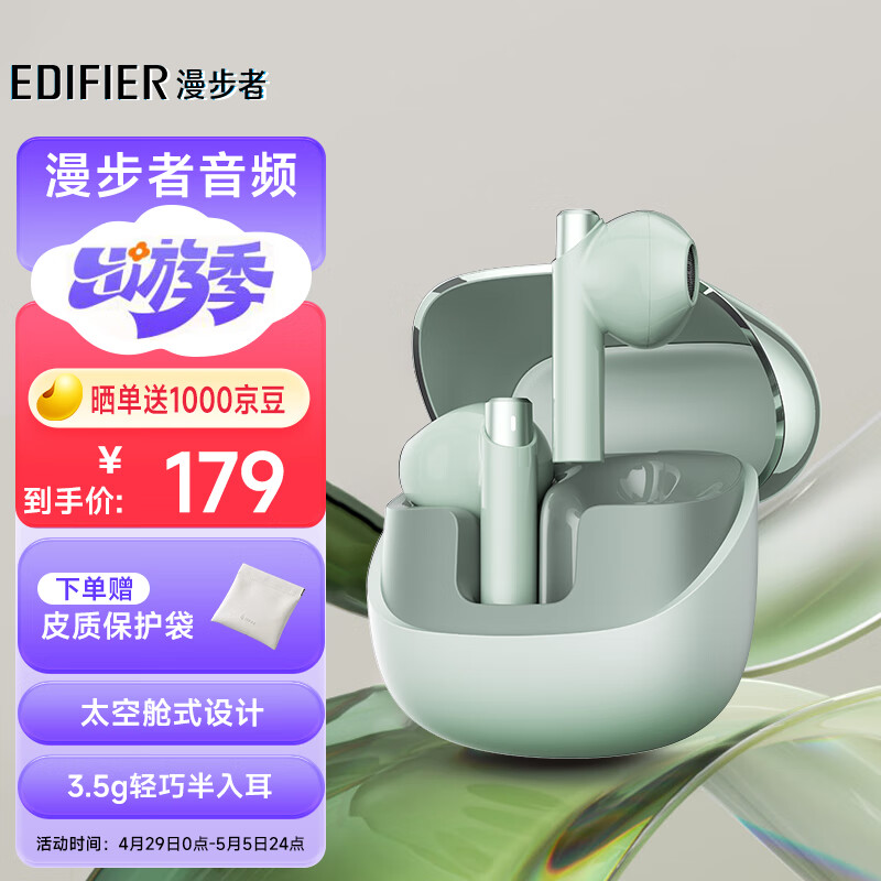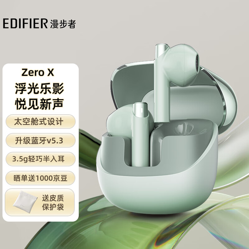漫步者(EDIFIER)Zero X 真无线蓝牙耳机 半入耳式耳机 无线耳机 蓝牙5.3 适用苹果华为小米OPPO 豆绿价格:179.00元!