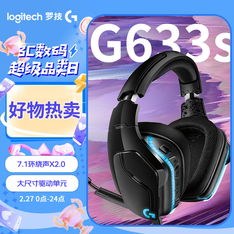 罗技(G)G633s 头戴式游戏耳机 虚拟7.1环绕声有线电脑电竞耳机耳麦降噪 RGB灯效 吃鸡FPS听声辩位价格:499.00元!