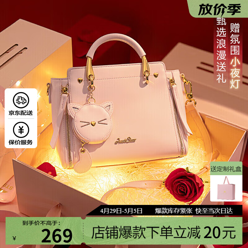 JUST STAR欧时纳包包女包2024新轻奢时尚单肩斜挎包大容量小众百搭高级感手提包女士包包实用走心生日礼物520情人节礼物送女友老婆母亲节礼物送妈妈 043樱花粉粉色礼盒装价格:289.00元!