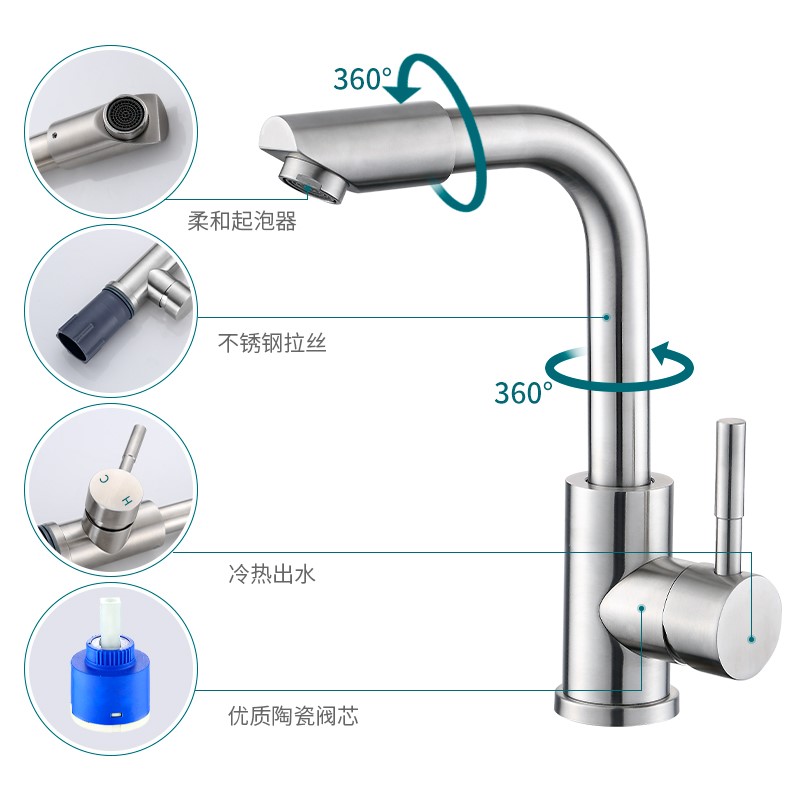 京东京造 面盆水龙头浴室 冷热双控 卫生间洗手盆 360°双旋转 304不锈钢价格:119.00元!