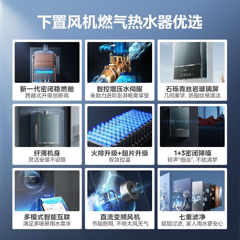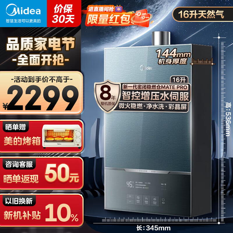 美的(Midea)16升燃气热水器天然气超薄小体积下置风机系列智控水伺服恒温新一代密闭稳燃舱家用热水器MATE系列 16升增压水伺服升级款JSQ30-MATEpro 下置风机系列价格:2849.00元!