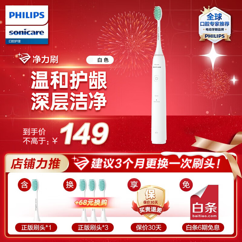 飞利浦(PHILIPS)电动牙刷 声波震动成人充电式软毛牙刷 情侣送男友/女友 洁齿护龈 净力刷丨2种模式丨冰川白价格:209.00元!
