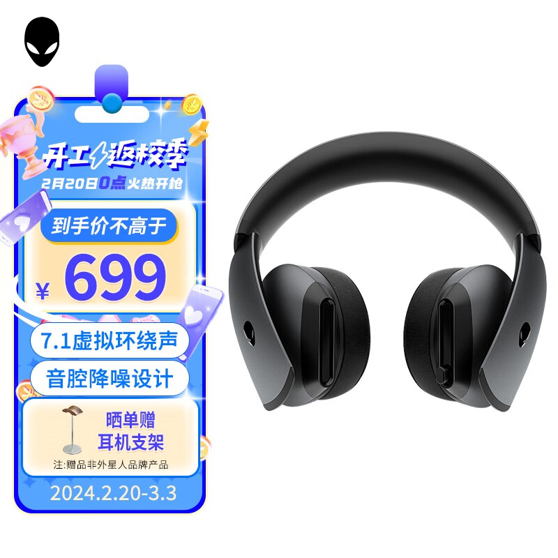 外星人(Alienware)AW510H 有线电竞游戏耳机 7.1环绕声 降噪高端外设 头戴式电竞耳麦 送男友送女友 黑色价格:699.00元!