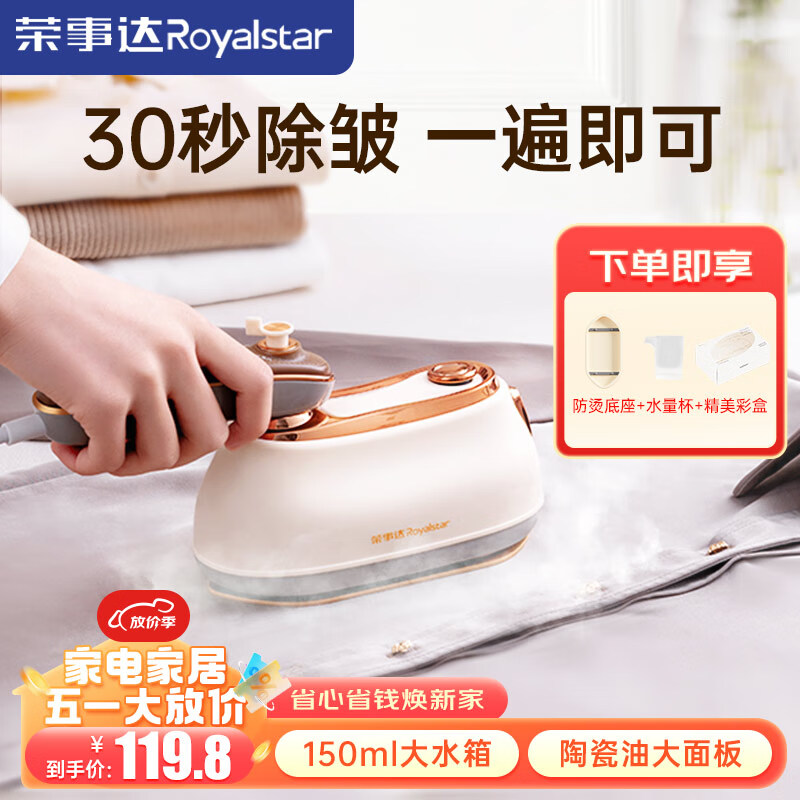 荣事达(Royalstar)挂烫机手持电熨斗烫挂烫机蒸汽熨斗衣服迷你小型便携家用烫衣机 陶瓷面板价格:139.80元!
