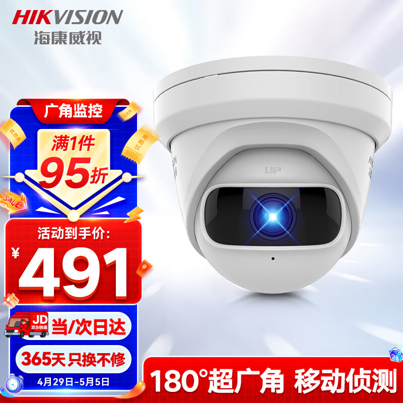 HIKVISION海康威视180度超广角监控摄像头400万超高清室内安防设备手机远程DS-2CD3346P1-I 1.68mm价格:517.00元!