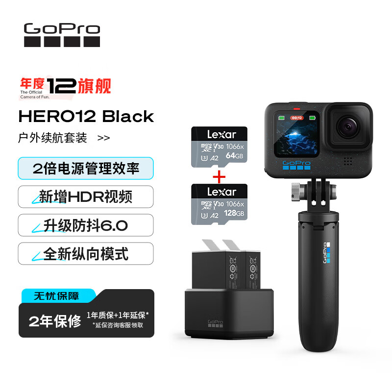 GoProH12 运动相机 户外摩托骑行防抖 水下潜水防水 滑雪照相机 户外续航加128G存储卡套组价格:3713.00元!
