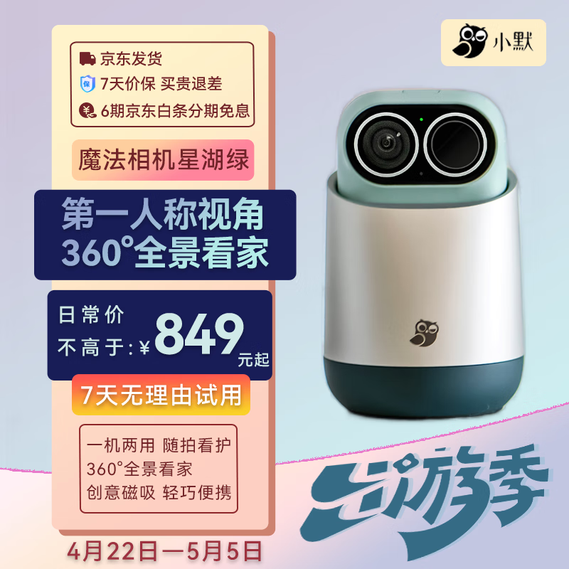 小默魔法相机vlog摄像机智能高颜值强力磁吸监控家用礼盒套装 骑行便携式运动相机 星湖绿价格:849.00元!
