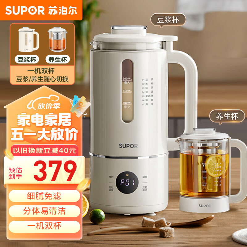 苏泊尔(SUPOR)豆浆机 家用多功能破壁免滤智能可预约免泡直打养生壶料理机搅拌机 DJ06B-Z101价格:469.00元!