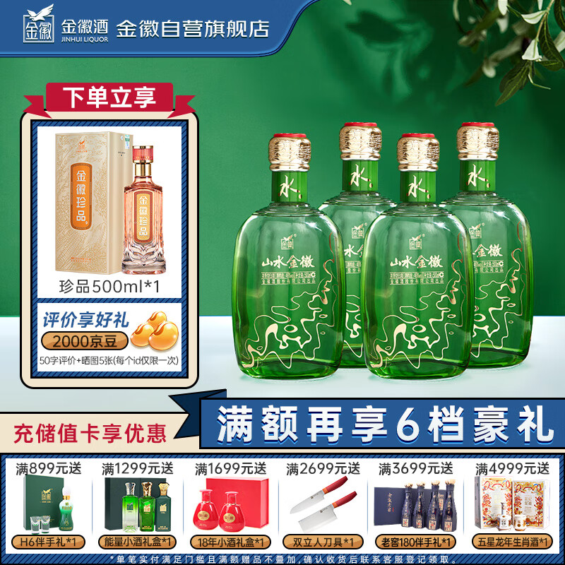 金徽 山水金徽·水 浓香型白酒 46度 500ml*4瓶 整箱装价格:398.00元!