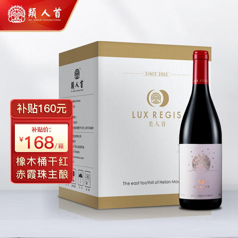 类人首红酒 贺兰山东麓皓月赤霞珠橡木桶干红葡萄酒750ml×6支整箱价格:168.00元!